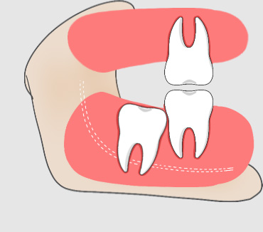 智齿萌发的空间不足,倒在第二大臼齿上。通常患者不自知,而由牙医以X光诊断得知。